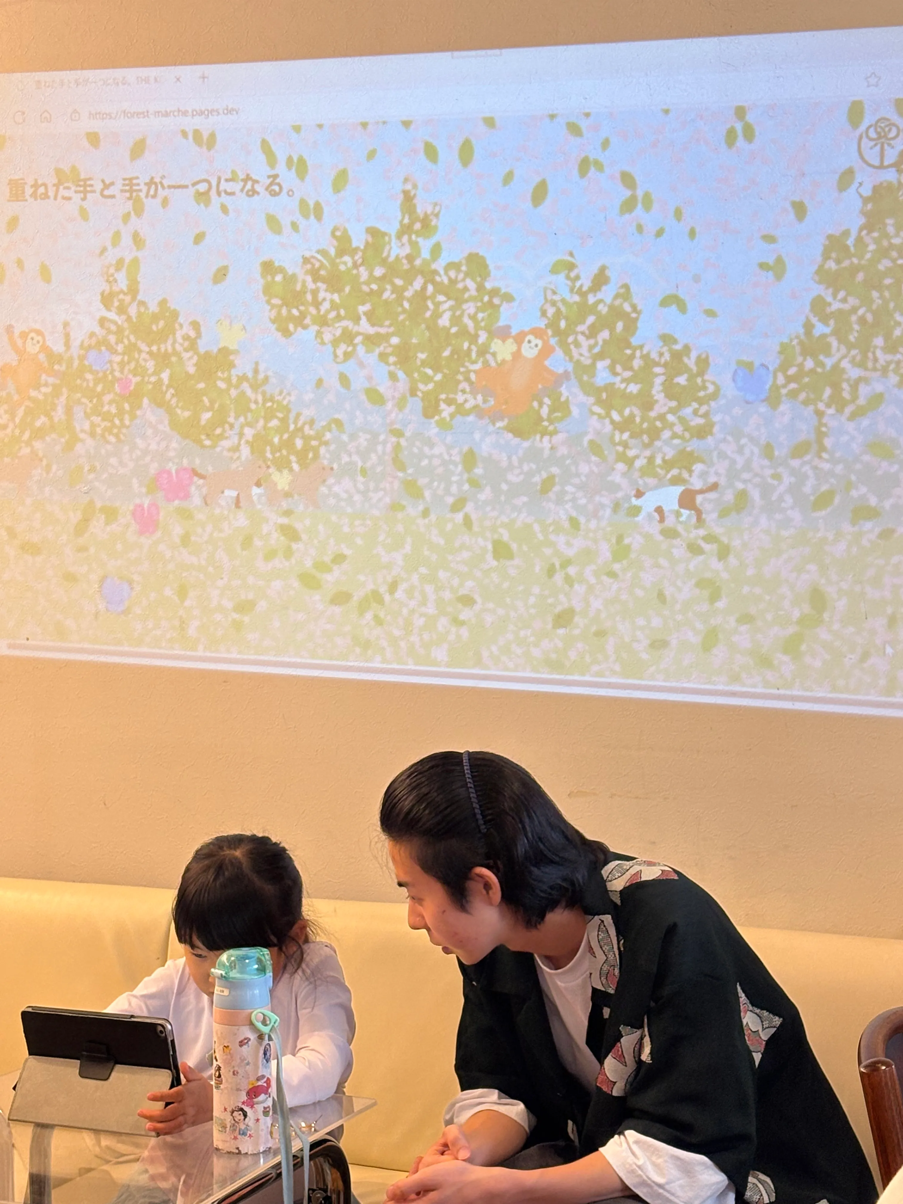 今回、マルシェに参加しつつ、「復興とチャリティのデザイン」をテーマに、インタラクティブなデジタルアートを制作しました。 お買い上げとレジが連動し、風船が飛び上がり、木が育ち、動物たちが戻ってくる——ゲームのような体験です。